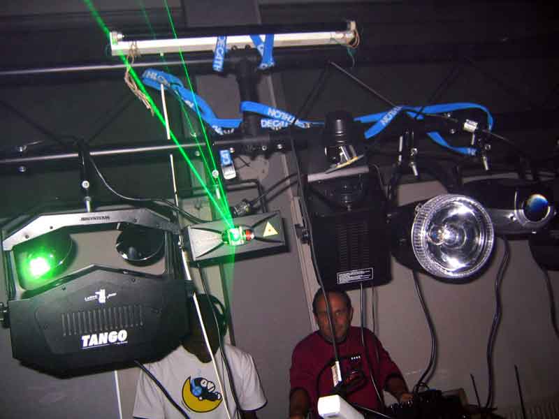 Le tout permettant de multiple point de sonorisation (lounge, discothèque,…) Stroboscope, scanner, roller, multiples effets leds de dernière technologie, multiples effets halogènes, lumière noire, show laser…. Machines à fumée dense...